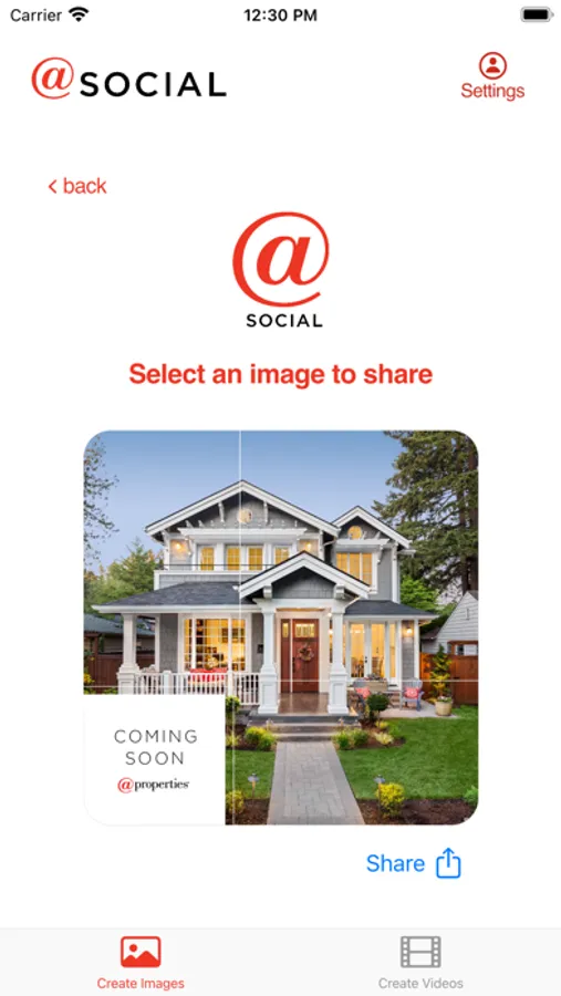 This app provides @properties agents with high-quality, pre-made social media content. It also gives agents the ability to upload their own videos and images to apply templates and branding almost instantly.