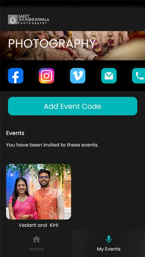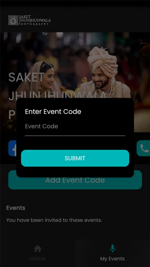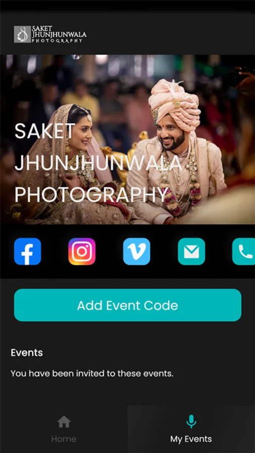 Just click on the link shared with you to access the event or enter the event code to get access to your event.