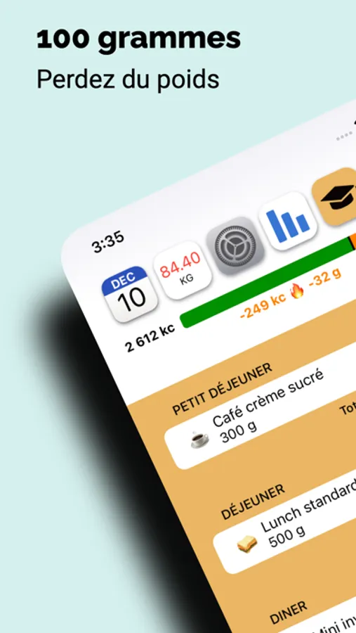 100 grammes calcule automatiquement votre équilibre calorique à partir de vos données, et défini votre budget calorique quotidien en fonction de votre objectif de perte de poids.