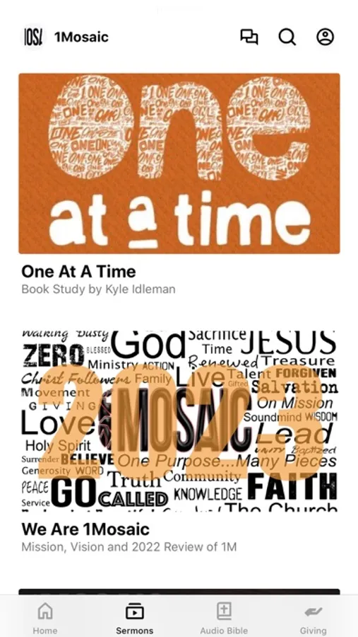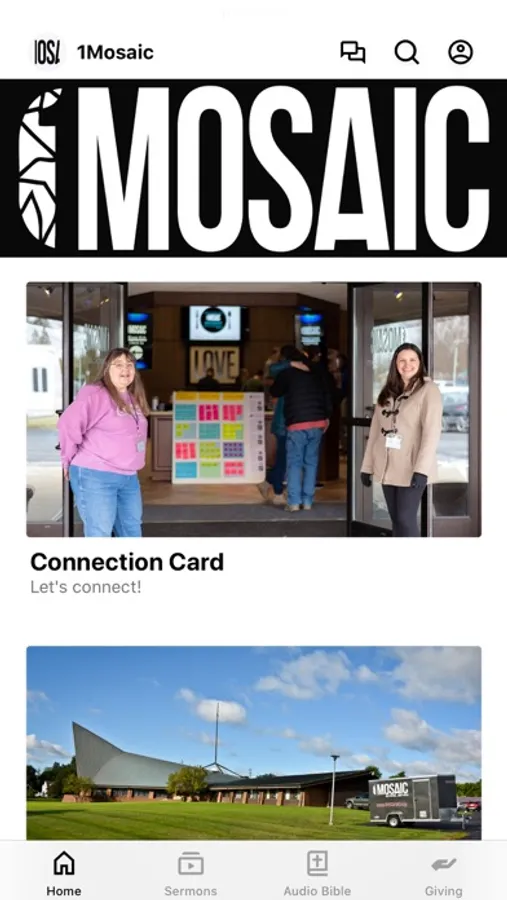 The 1Mosaic App is filled with content from 1Mosaic Church in Adrian, MI to help you stay connected with the day-to-day life of our church. You can now access live-stream and past messages, study from sermon notes, stay connected with upcoming events, give online and easily share resources with others.