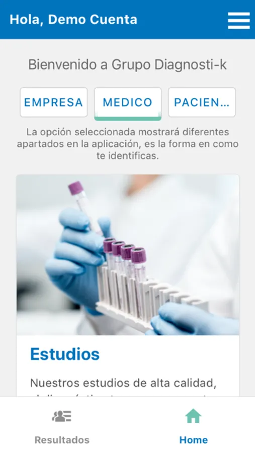 La Aplicación de Grupo Diagnosti-k es para Pacientes, Médicos y Empresas donde podrás consultar tu histórico de resultados de laboratorio e imagen de una manera organizada y asertiva.
