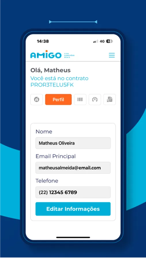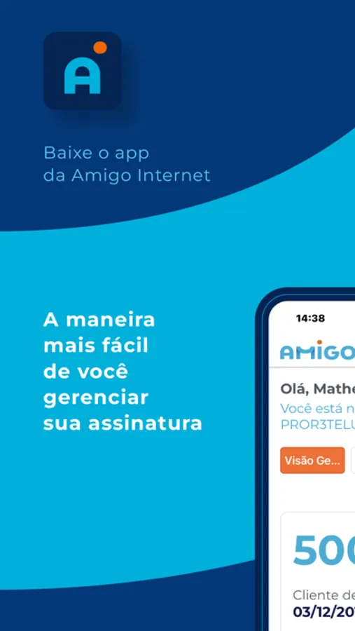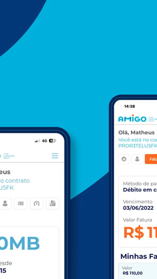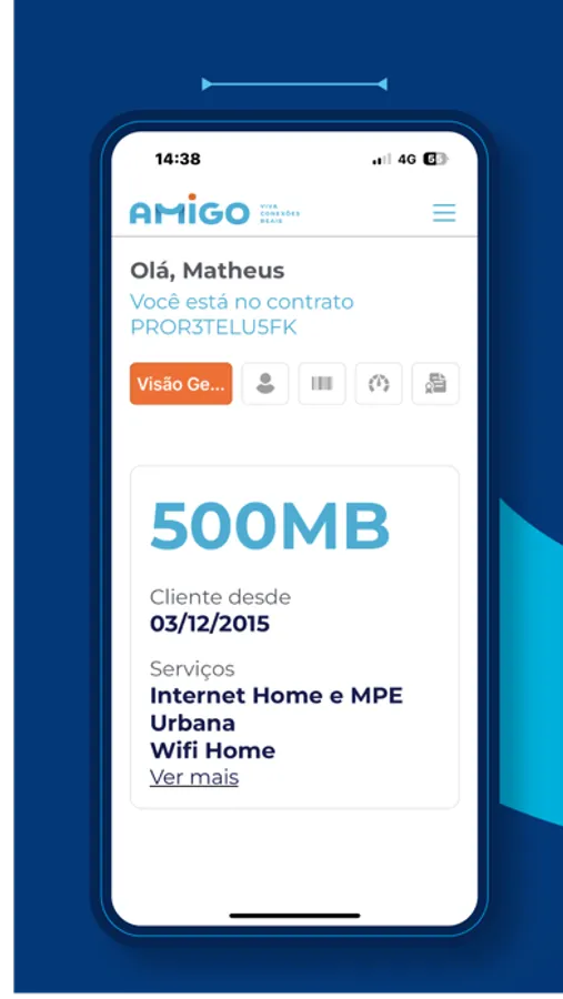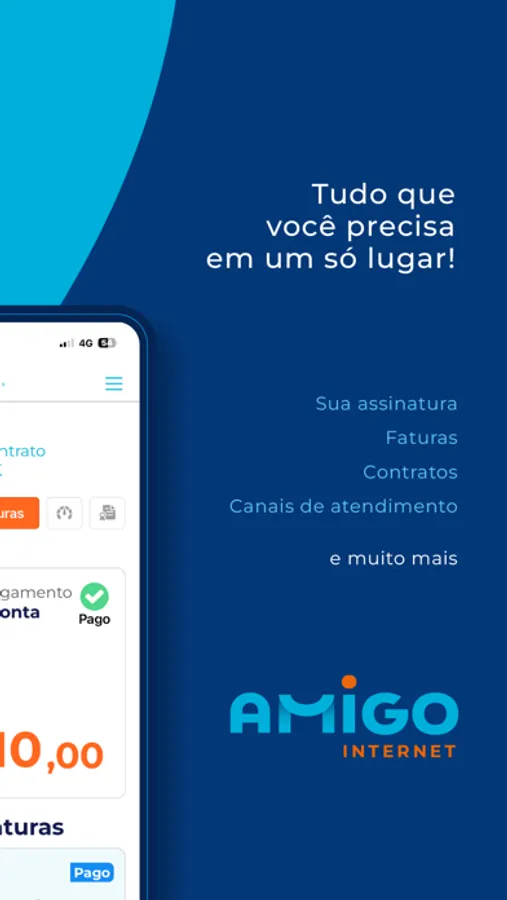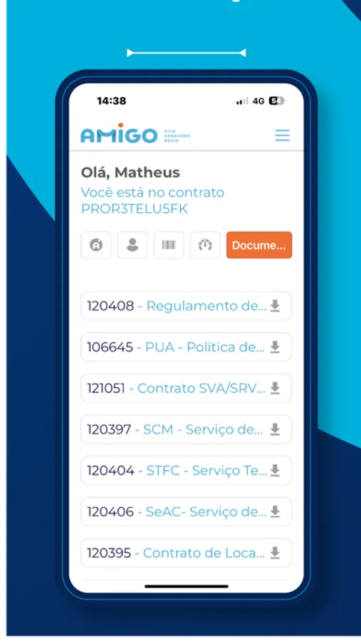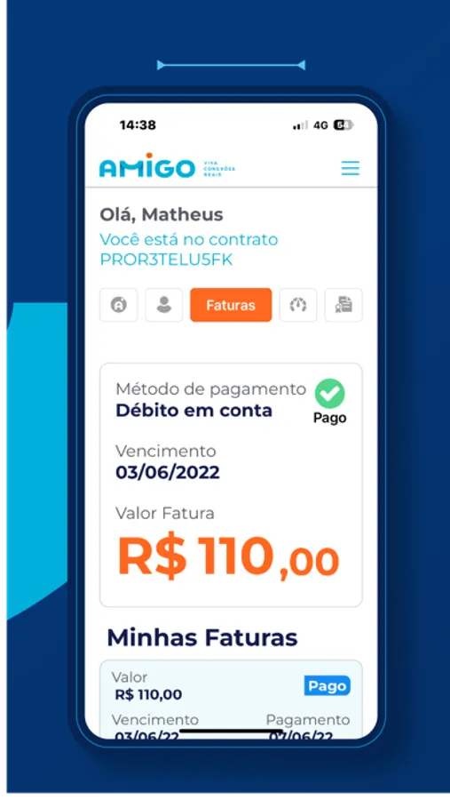 Can see the history of paid invoices, view the next one. Download the PDF or payment code for your bank's app. You view active service contracts, your contracted plan data and have direct access to Amigo's service and support channels.