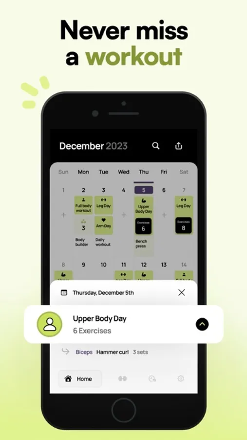 Workout Tracker lets you easily plan your workouts and see your progress over time, all conveniently in a calendar format.
