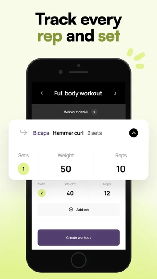 It features a simple and user-friendly interface that allows you to easily input your exercises, sets, reps and weight.