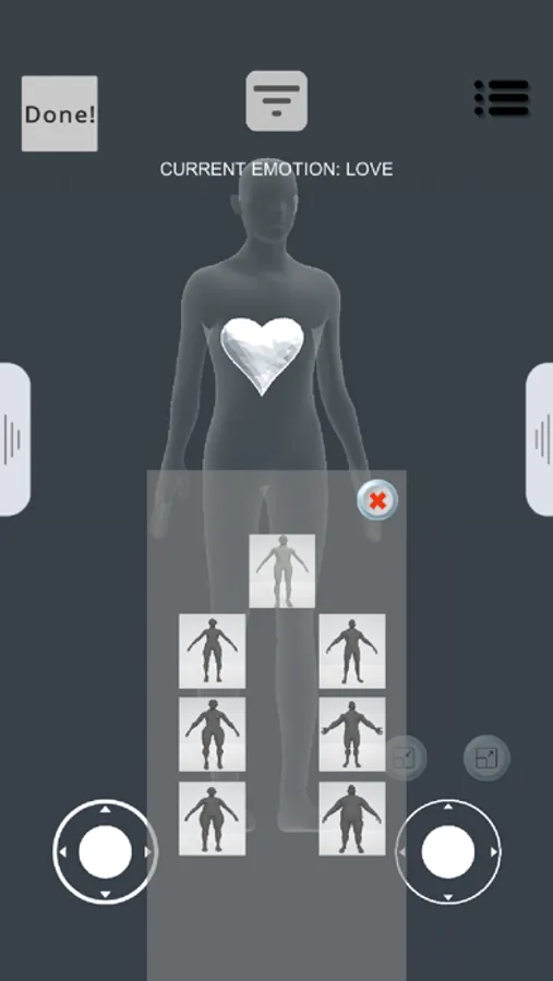 Joystick to modify the size and rotation of the 3D selected body map