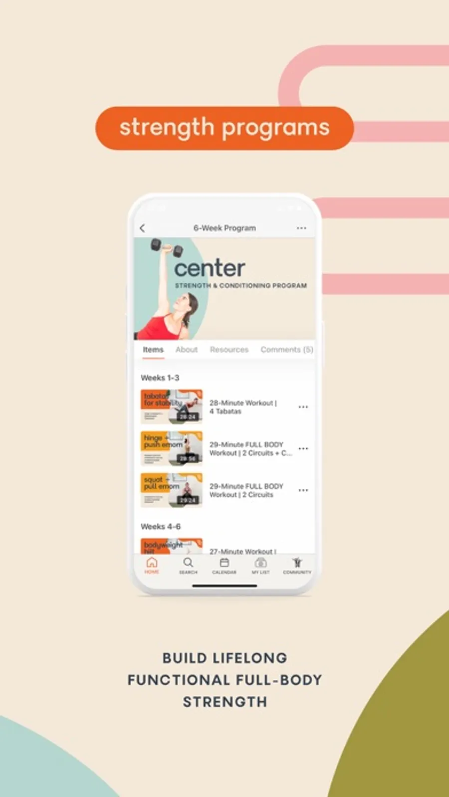 -Four Signature 6-Week Strength Training Programs with calendars + progress tracker to build and maintain lifelong functional full-body strength.