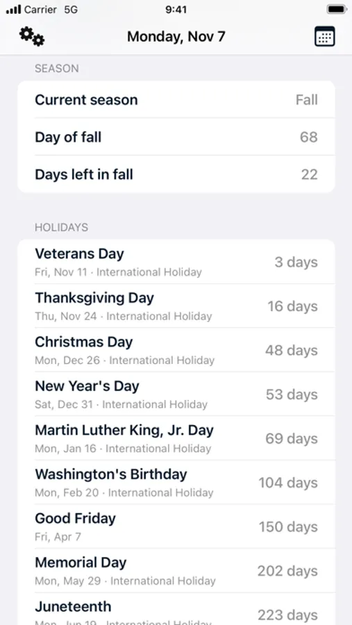 Keep track of major holidays and seasons with our easy countdown tracker. Let [Bee] do the math for you!