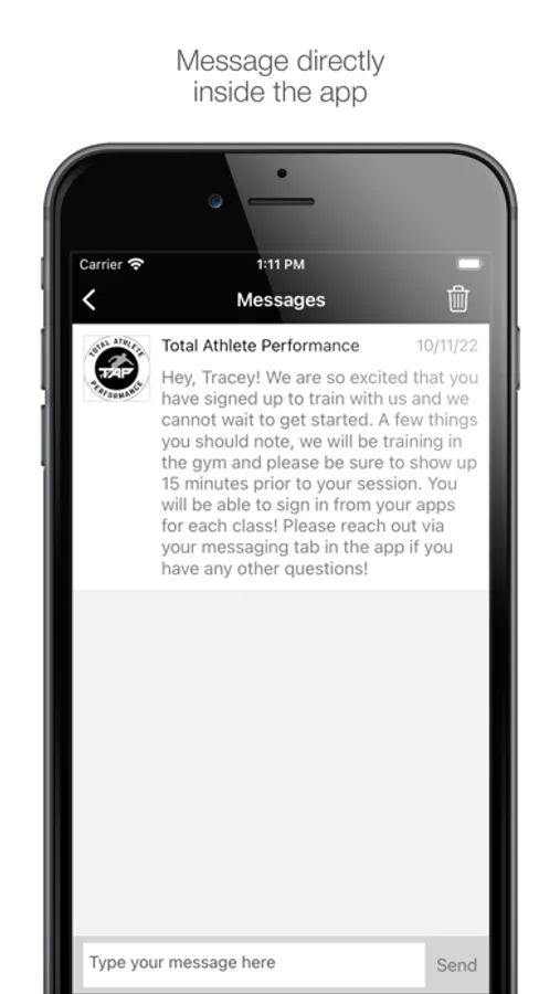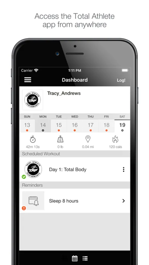 Log your Total Athlete Performance workouts from anywhere with the Total Athlete Performance workout logging app! View your logged workouts, see upcoming scheduled workouts, and book appointments inside the app. Track your progress and get the most out of your Total Athlete Performance workouts!