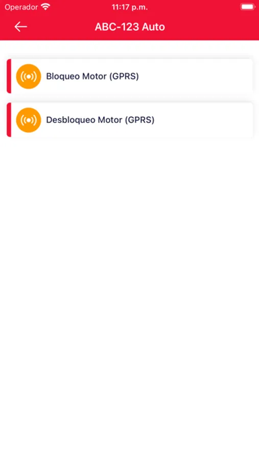 * envío de comandos de bloqueo/desbloqueo de motor desde el app