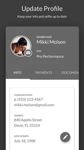 For members of Pro Performance to reserve their place in a class, sign up for gym events, and general account management like updating headshots and credit card on file.
