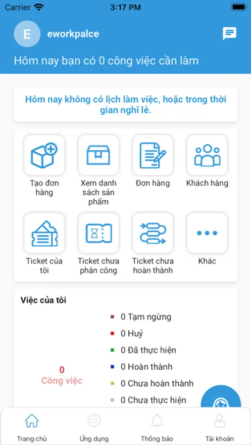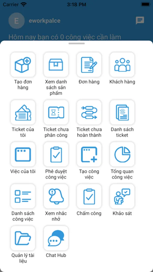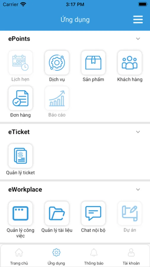 - ePoints Workspace là một không gian làm việc trên nền tảng điện toán đám mây, bao chứa tất cả công cụ làm việc online như: điểm danh, tạo đơn hàng, đặt lịch, bảo trì bảo hành, quản lý công việc - ticket, quản lý khách hàng, phân loại tiềm năng, chat nội bộ, chathub, quản lý tài liệu … nhằm hỗ trợ người dùng làm việc độc lập/ theo nhóm hoặc kết nối với khách hàng nhanh chóng, dễ dàng.