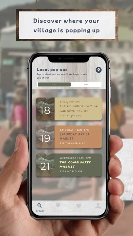 - See upcoming events by date with the list view or see convenient nearby events with the map view