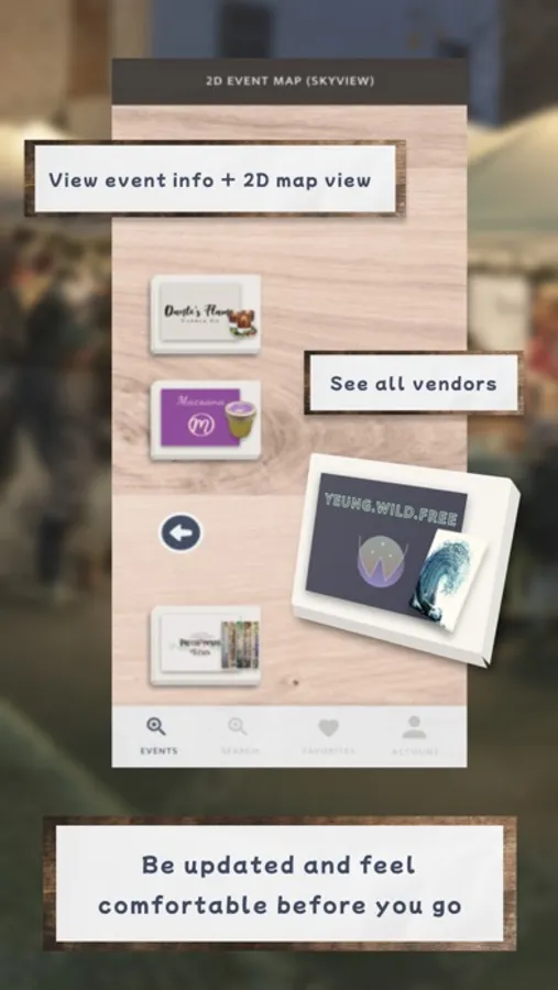 - Search for specific artists or find new artists by browsing event vendor lists
