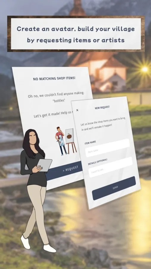 You can make your way into your village by checking the community board for pop-up events, searching for essential items and finding handmade versions, or following your go-to local makers/artists to their next events!