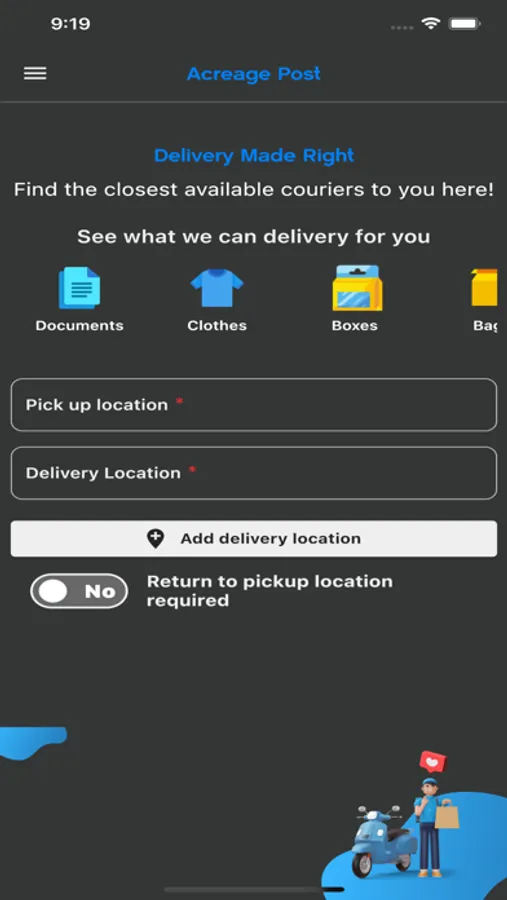 Make online shopping easier by instantly having the items you are looking for right at your doorstep. Delivery is now way faster and easier than ever before. You can place order through our mobile app with ease. Anything from your favorite Courier/parcel, restaurant, auto parts store, hardware store and Restaurant.