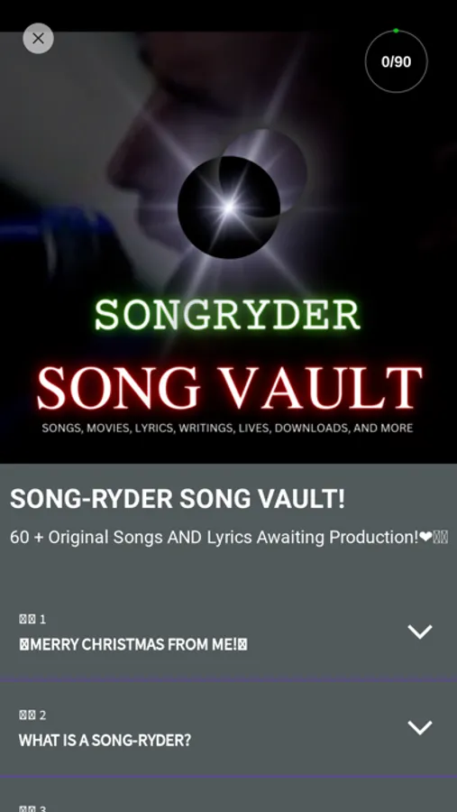 Ive written deep songs for 24 years of my life and I have over 60 downloadable completely original songs in the “Song Vault” with Lyrics, stories, alternate and raw recordings, videos, links, community channels, and more.