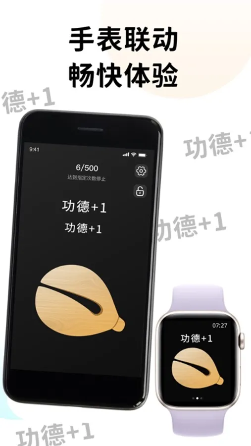 手机手表联动的精神稳定神器,点击屏幕就能敲击木鱼,随着木鱼的律动瞬间消散压力