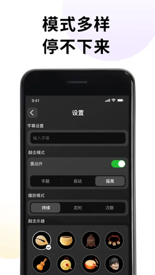 还有更多趣味音效,钵,手铃,吉他,锣,中国鼓等等,让你的敲击更好玩!
