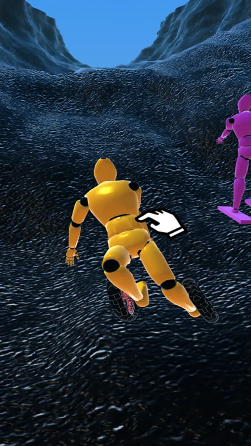 Manipulate the mannequin and make it to the finish line at the bottom of the hill unharmed!