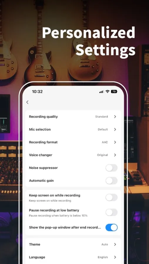 Professional high quality recorder that can help you record audio memos, class notes, music inspirations, voice over and etc.