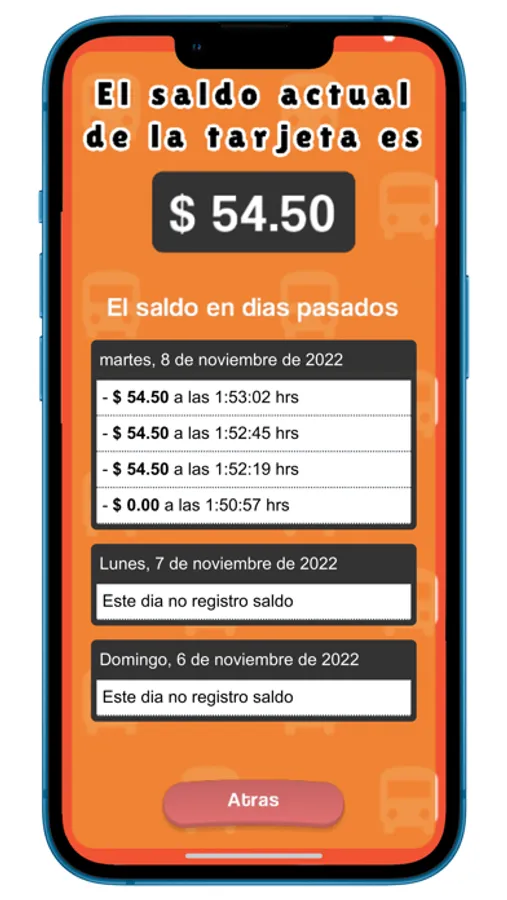 Esta app te permite consultar el saldo de la tarjeta y llevar una bitácora de de ella, de la manera mas simple posible, solo presiona consultar saldo y coloca la tarjeta cerca de tu movil y listo.