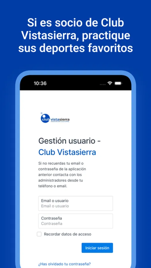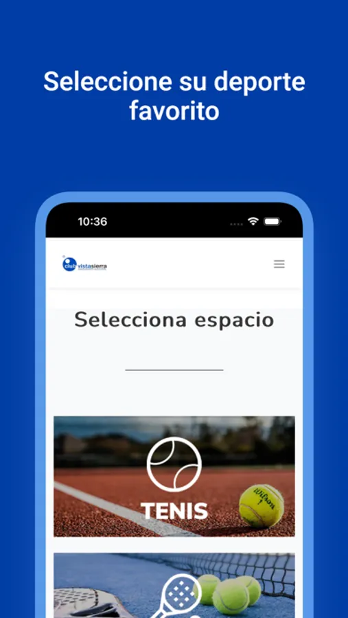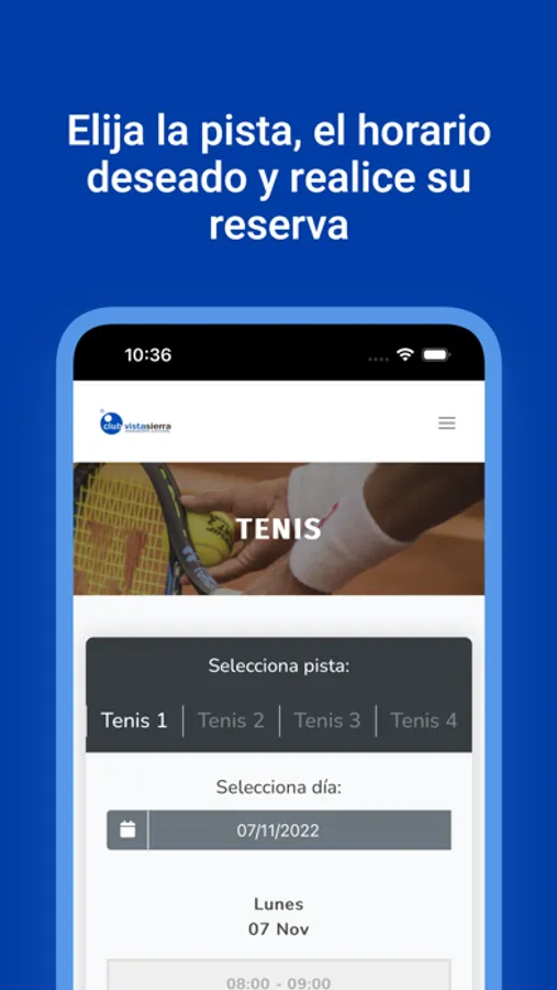 Aplicación de Club Vistasierra. App en la que los socios podrán realizar reservas en los espacios deportivos cómo padel, tenis, etc..