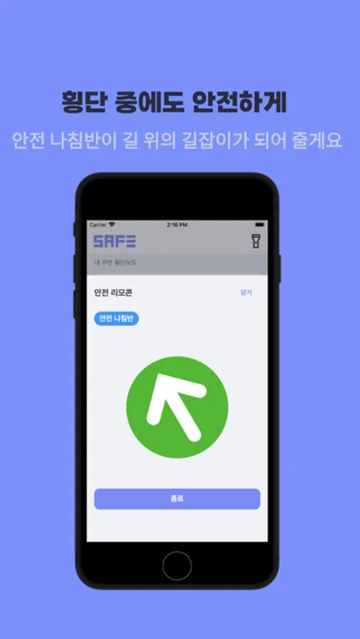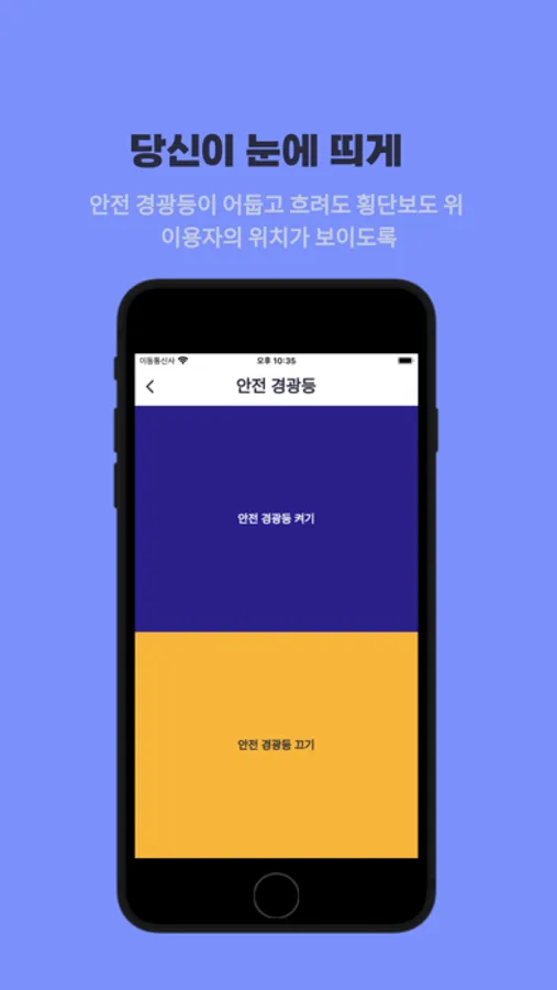 핸드폰의 플래시를 이용해 운전자의 시야에 사용자가 눈에 띌 수 있도록 도와줄것입니다. 어두운 밤, 흐린 날도 안전하게 길을 건너세요.