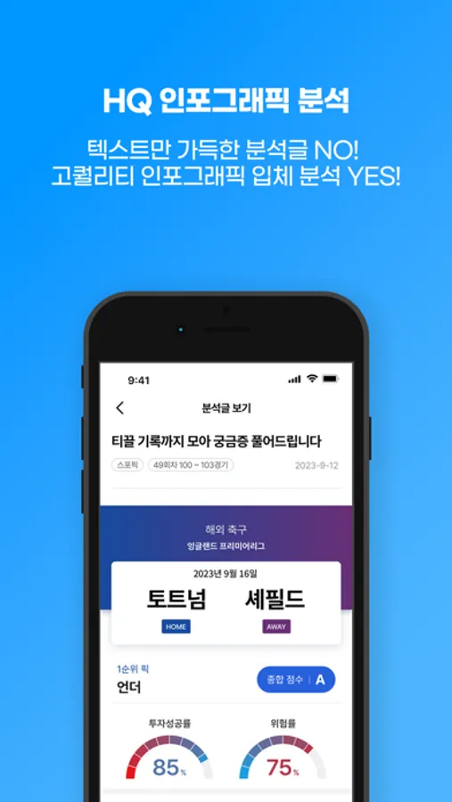 '스포픽'은 유저들을 위한 독점적인 결과 예상 정보들을 제공합니다. 고퀄리티 인포그래픽이 더해진 다양한 경기 분석 정보로 결과 예상에 죽고 사는 스포츠 라이프의 질을 높여 드립니다.