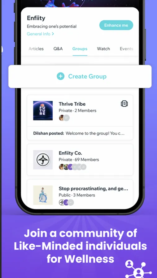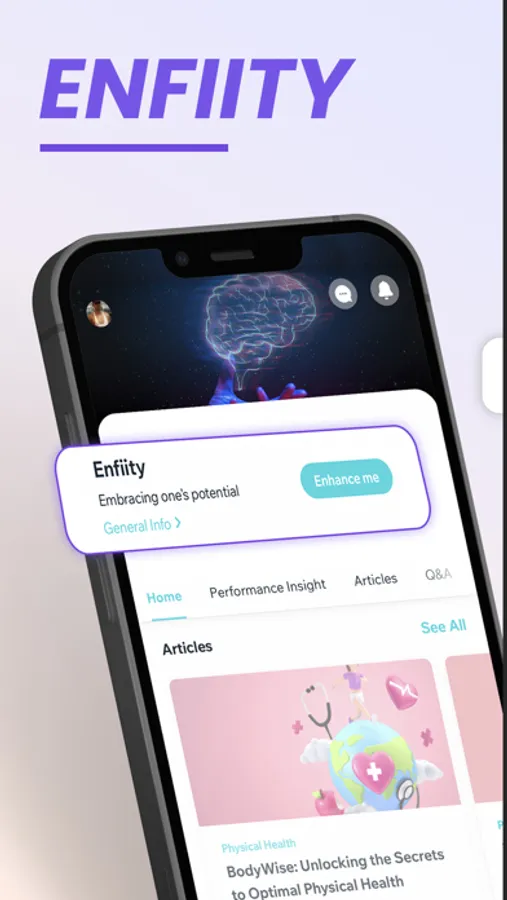 Achieve optimal mental and physical health with Enfiity - the #1 synthetic health app that connects you with expert psychologists, personal trainers, nutritionists, and AI technology. Get personalised guidance, engage in live discussions, and join a supportive community today!