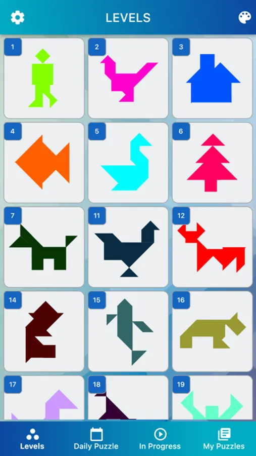 There are different modes and more than 1000 levels in this tangram puzzle. You can select the mode you want to play and enjoy limitlessly. Download the puzzle tangram on your device for free, drag the polygram pieces to place them in their right position, arrange the board correctly and play as long as you like.