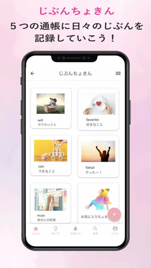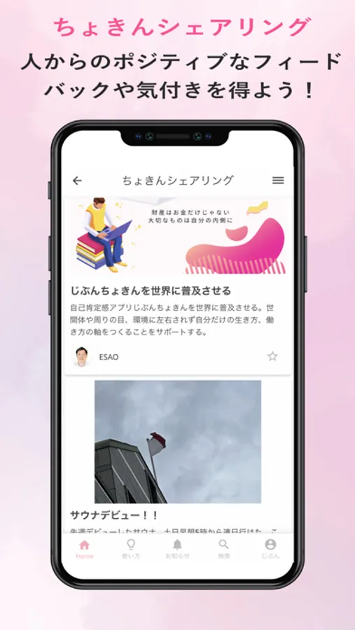 自己肯定感アプリじぶんちょきんの提供価値は3つです。①自分の内面と向き合い、ポジティブな感情にフォーカスし「記録=ちょきん」していくことで自己理解が深まります。②「ちょきん」に対して他者からポジティブなフィードバックが得られたり、成功体験や自己成長を「ちょきん」していくことで自己肯定感が高まります。③自己理解や他者からのサポートが蓄積されていくことは、自分という大切な資産を増やしていくことであり、あたかもじぶんをちょきんしていくような体験を提供します。また次の3つの機能を有しています。①じぶんちょきん:自分のことを内省/言語化しつうちょうに記録する、②ちょきんシェアリング:つうちょうを相互にシェア、③自己肯定感測定:定期的に自己肯定感を測定できる。自己肯定感アプリじぶんちょきんで、世界中の人たちが自分らしさを持ち、自分を大切に肯定的に生きられる世の中の実現を目指します。
