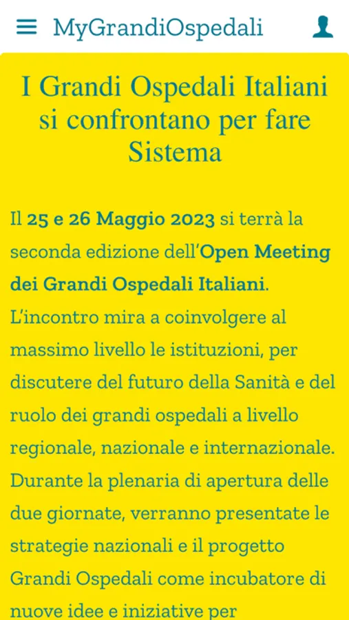 MyGrandiOspedali permette la partecipazione delle persone agli Open Meeting dei Grandi Ospedali Italiani.
