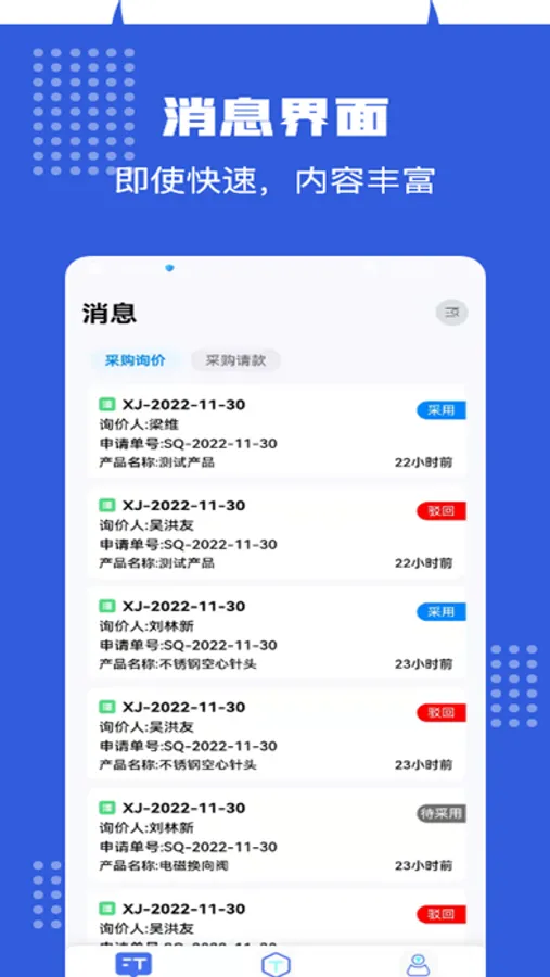 铁甲钢拳(iPhone版),是专门为iPhone手机用户推出的一个集采购、库存、生产于一体的工作平台,能满足用户对于货物采购以及取用的各种需求:采购申请、询价、合同、请款、货物入库、盘点、领取等等。