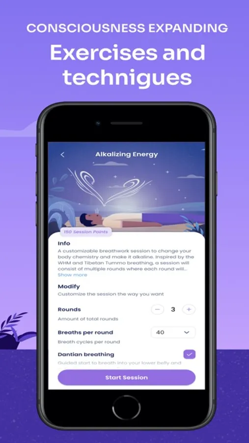 The application is till en early development stage, and a lot more content and features will be added. For now you can enjoy our Breathwork & Quantum Reiki sessions where you get points as you progress.