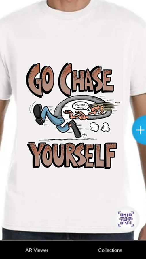 Get ready virtual reality is making its way to T-shirts in a fun new way. R-Go augmented tees are here and about to invade your closest. Use the R-Go viewer to see our animated designs like Go Chase Yourself, dew dropper, Oliver Twist, Sheeba and many more — R-Go tees come to life right before your eyes.