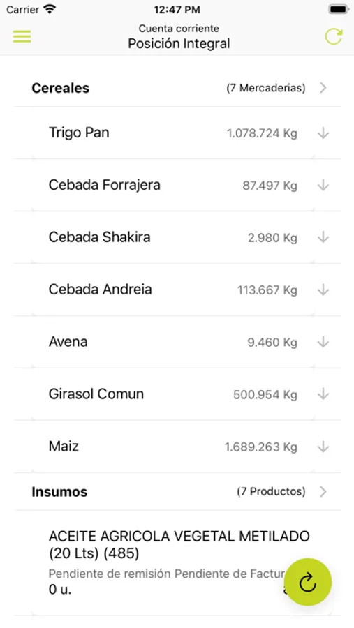 Cereales (Negocios, certificados de deposito, entregas, etc),