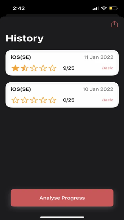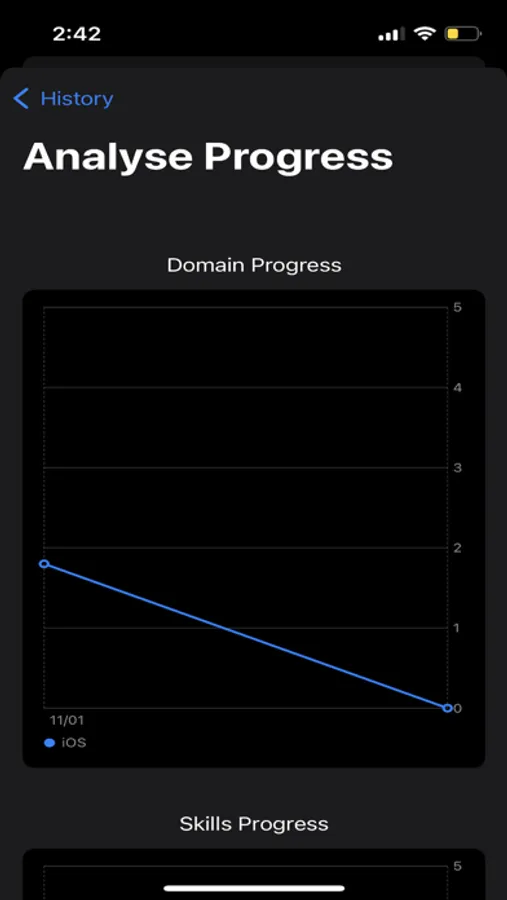 The third segment of the application offers an option to analyze progress of the tests taken and look at skill wise progress data for each concluded test. This helps individuals to own their learning charter and growth. This tab also has an option for the individual to share their progress report to any senior person in order to have more meaningful career oriented conversations.
