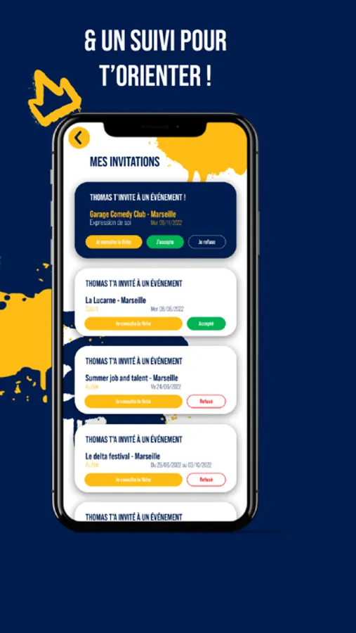 Une app pour t’inscrire à nos évènements en ligne ou en physique autour du sport, du gaming, de l’art (danse, stand-up, rap,…) ou de l’influence.