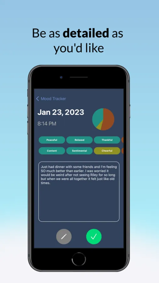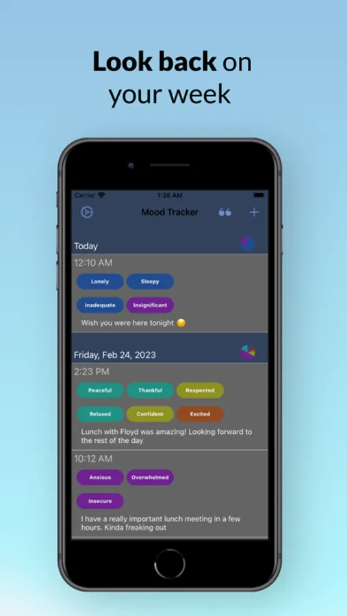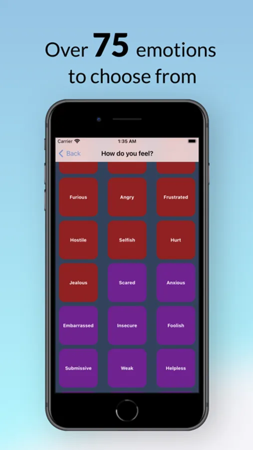 Simply tap on any combination of over 75 different emotions and enter any additional details you'd like to add about how you're feeling.