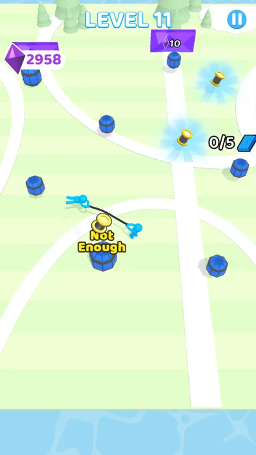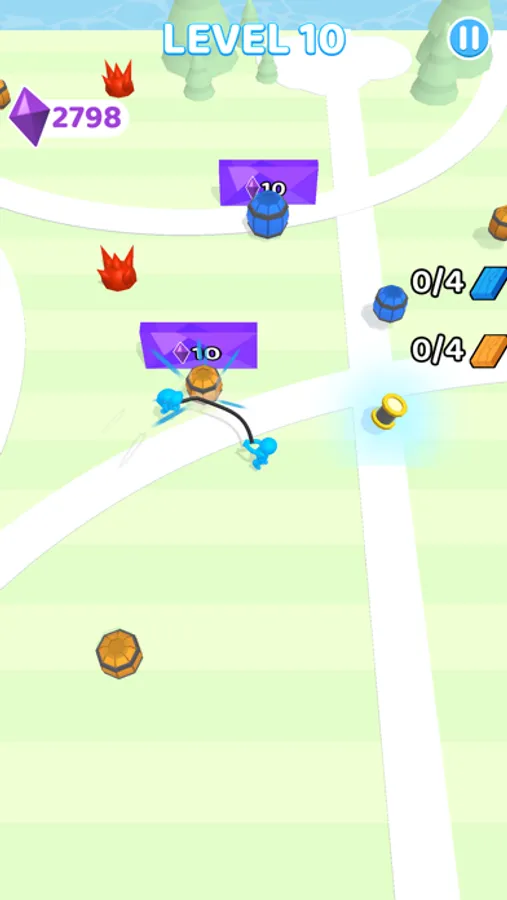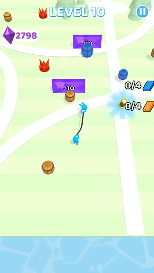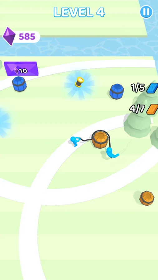 Two brothers who make a living by collecting barrels in a town. Grab the rope and start wrapping. Complete your mission by squeezing the barrels. You need a more rope for the biggest barrels. That's what a spool of thread is for. Surely you need to pay attention to thorns around you. If you hit to thorns you need to get the rope again. Don't worry! There are too many around. The mission will has been completed by the correct amount and colour you have. Attention! You may feel dizzy!