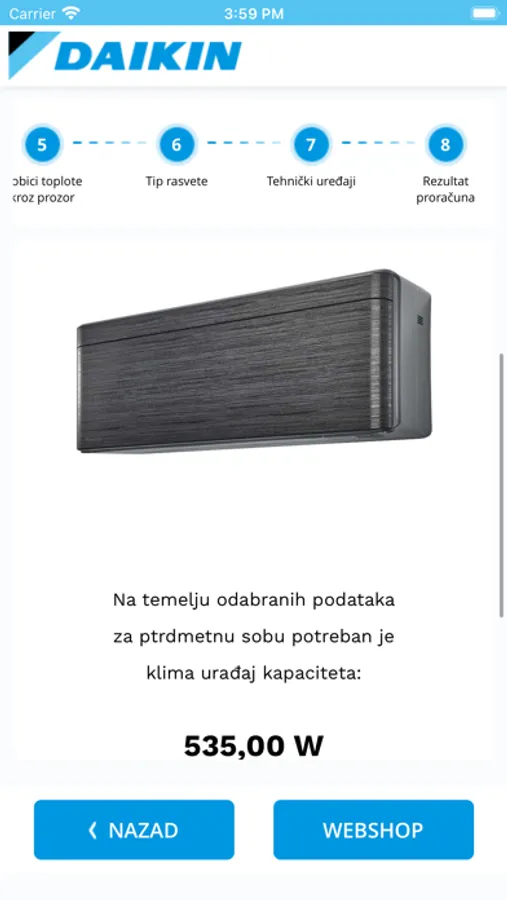 Split Kalkulator aplikacija omogućava vam da pronađete klima uređaj prema vašim potrebama, uz samo nekoliko koraka. Sve što je potrebno jeste da unesete podatke a aplikacija će na osnovu tipa objekta, položaja prostorije, orijentacije i površine objekta, tipa rasvete i ostalih tehničkih uređaja koje posedujete, dati predlog vašeg idealnog klima uređaja.