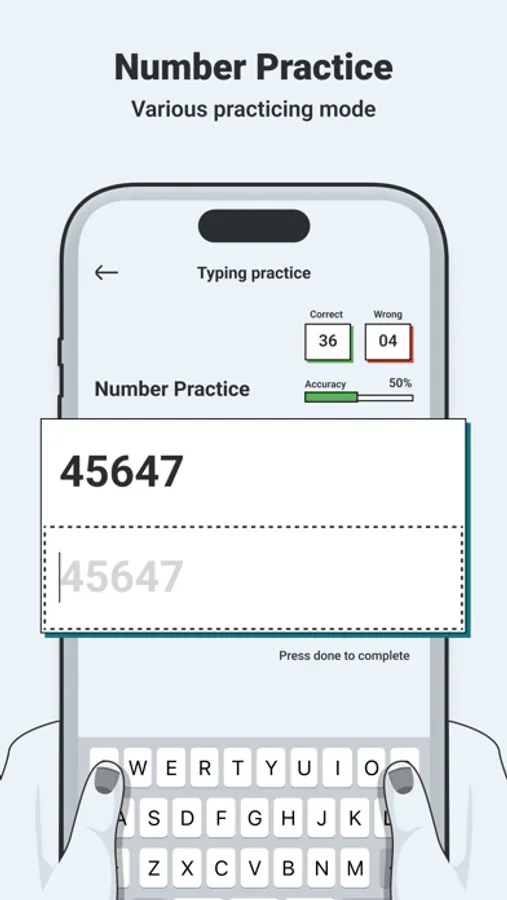 In typing practice master we provide practice of typing from single character to paragraph , yes there are numbers too. There are basically two sections one for practice and one for test , In practice you can practice single character , single word , numbers and paragraph. In practice section , we shown your accuracy as you typed.