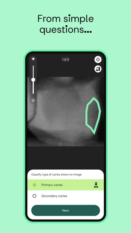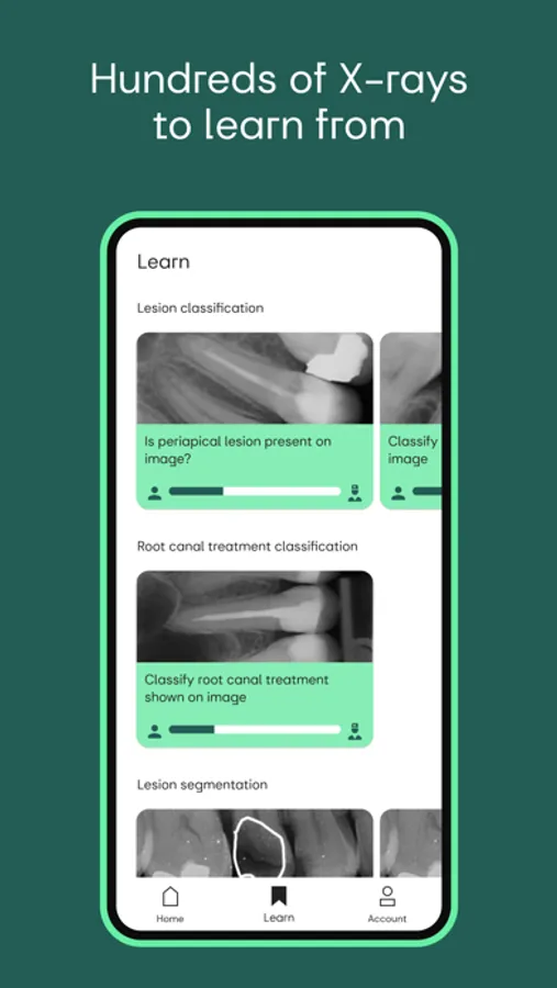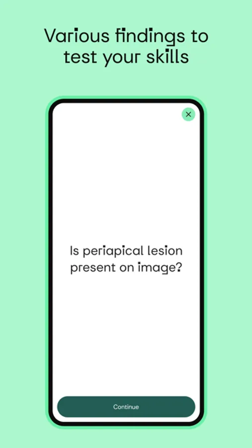- Test and improve your skills of identifying and inspecting different findings like caries, lesions or root fillings...