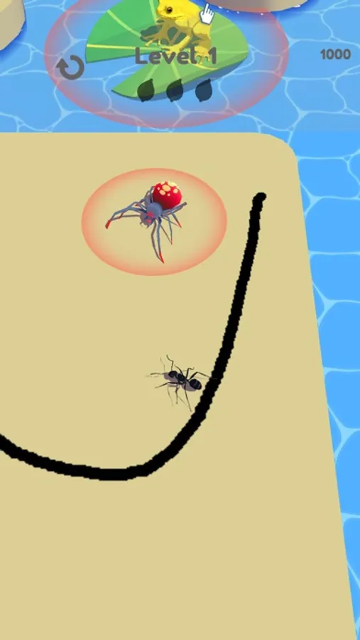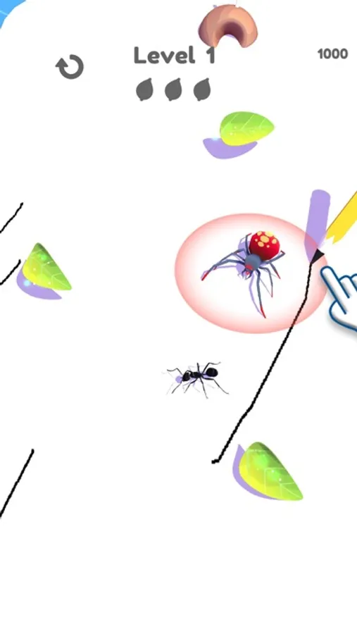 Use a pencil to get ants home safely, avoid spiders and frogs, and don't forget to pick up leaves.