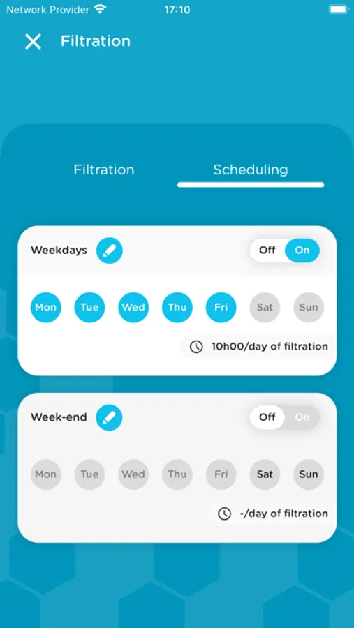 Timeo is your new technical room control application. It allows you to control, by bluetooth, the main functions of your swimming pool: filtration pump program, light control.