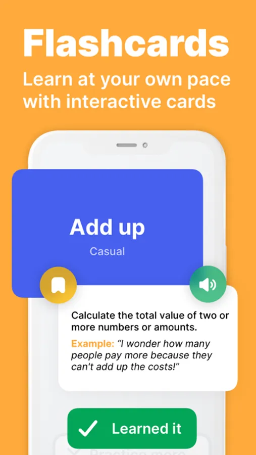 Learn from more than 500+ essential English idioms carefully picked by expert tutors. Use the Smart Round for personalized flashcards generated by our learning algorithm.
