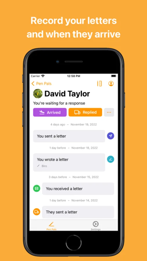 • Add your friends, record when you send them letters or they send something to you. See how long it takes for your letters to arrive!