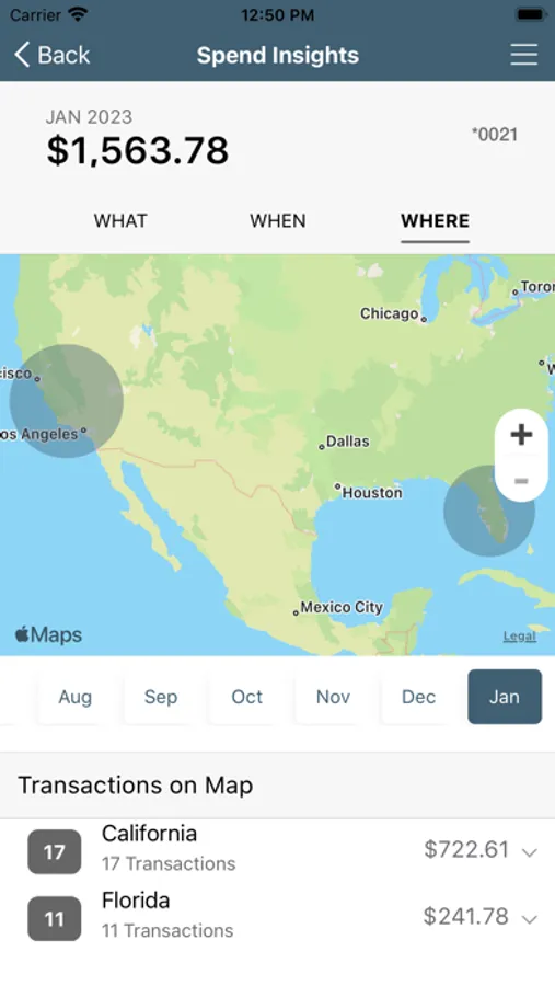 Get rich data about your card purchases, with Spend Insights. Sort spend insights by merchant category, location, and monthly trends.