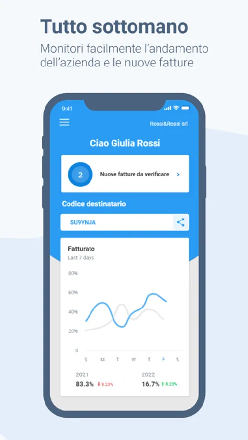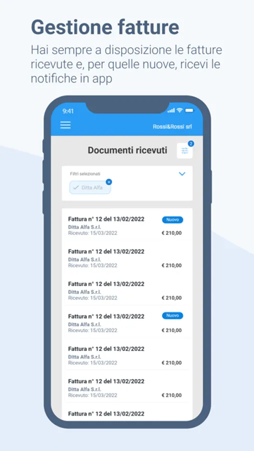 L'App Fatturazione CGN è la versione mobile del software di Servizi CGN Società Benefit. Uno strumento che permette di visualizzare e condividere le fatture ricevute. Con Fatturazione CGN hai le notifiche della ricezione di ogni singola fattura, gestisci agevolmente i tuoi contatti e verifichi l'andamento del fatturato. Un'app completamente integrata con la versione desktop che permette di avere i tuoi contatti sempre sincronizzati.