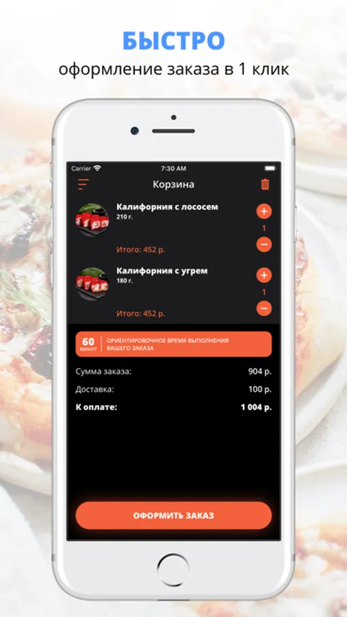 Скачивайте наше приложение, оформляйте заказ и наслаждайтесь любимой едой, где бы Вы ни были! Приятного аппетита!
